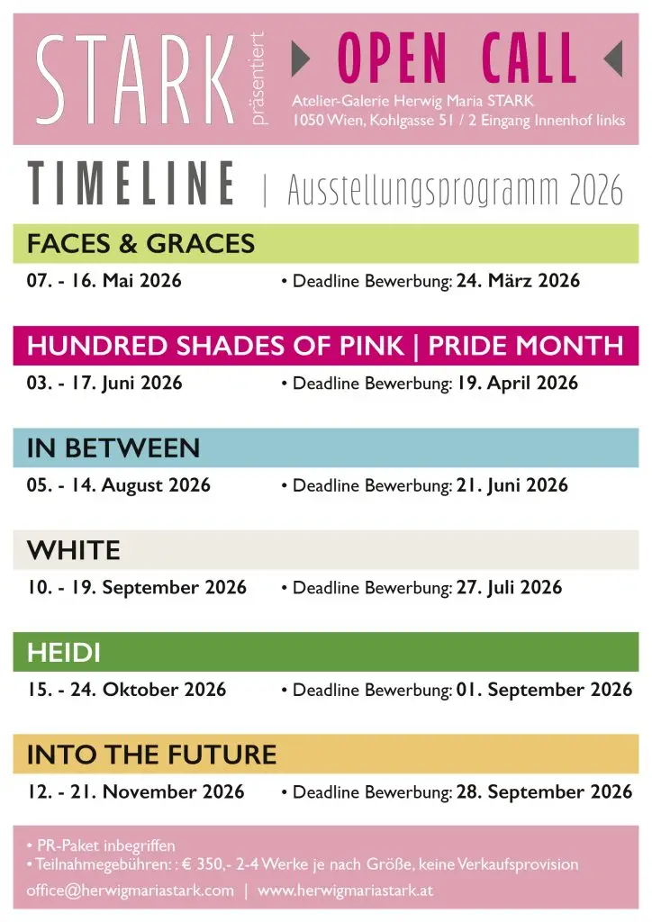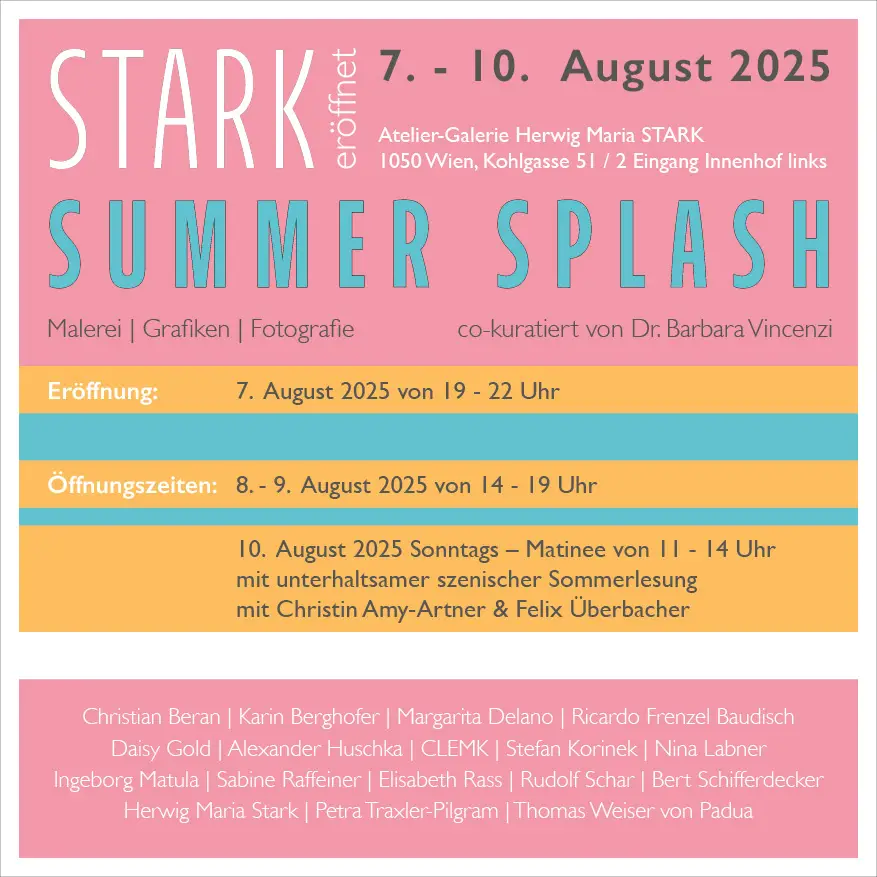 Die Ausstellung findet vom 07. Bis 10. August in der Atelier-Galerie Herwig Maria STARK in Wien (Kohlgasse 51/Top 2, 1050 Wien) statt.